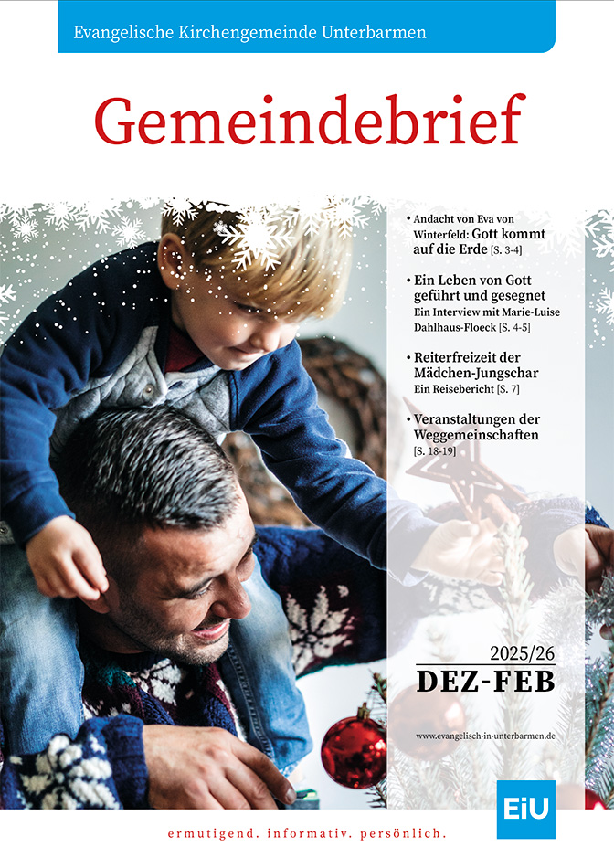 Im Folgenden finden Sie den aktuellen Gemeindebrief mit allen Informationen aus unserer Kirchengemeinde und einen Überblick über die Angebote für Kinder und Jugendliche sowie Erwachsene. Machen Sie sich einen Überblick über die vielfältigen und auch ehrenamtlich getragenen Gruppen und Kreise.